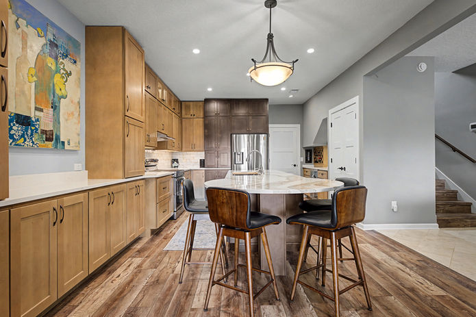 Revitalized this kitchen by eliminating the wall between the old kitchen and breakfast room, resulting in an open and welcoming space. Open up the entry way into the space and moved the door to the home office to improve flow and accessibility throughout the area. We also crafted a custom pantry and wine nook conveniently located beneath the stairway, blending practicality with elegance.